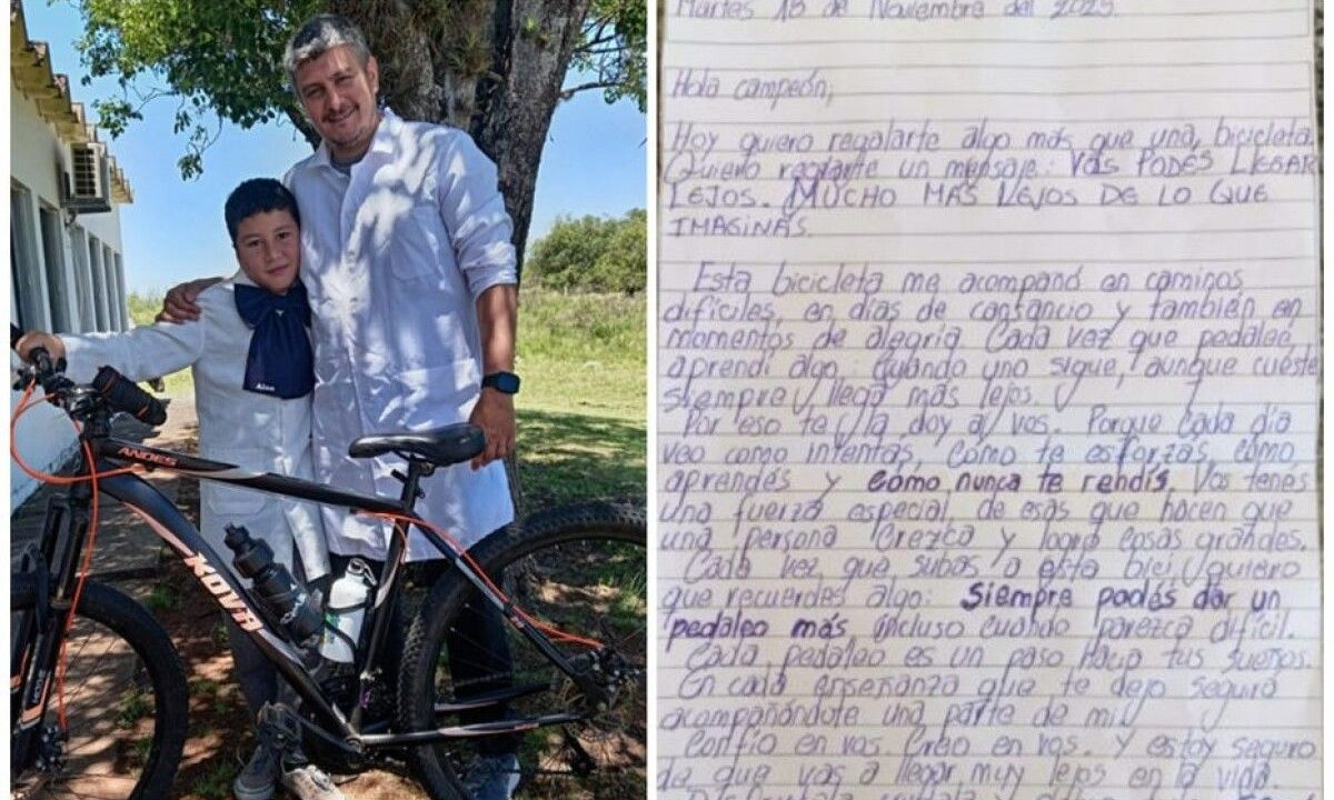 Maestro uruguayo le regaló su bicicleta a un alumno y su carta se hizo viral: “Siempre podés dar un pedaleo más”