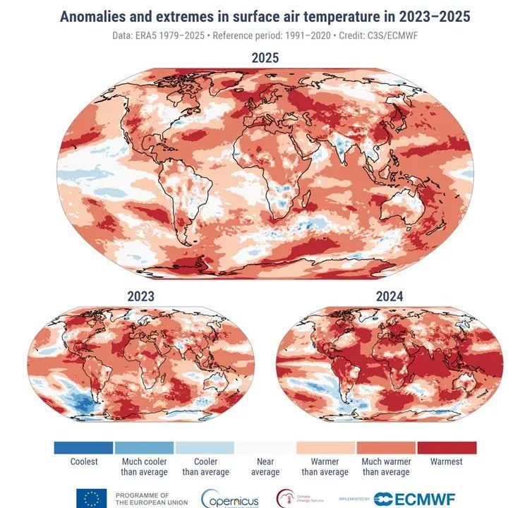 El 2025 entre los tres años más cálidos registrados a nivel global, según datos climáticos internacionales