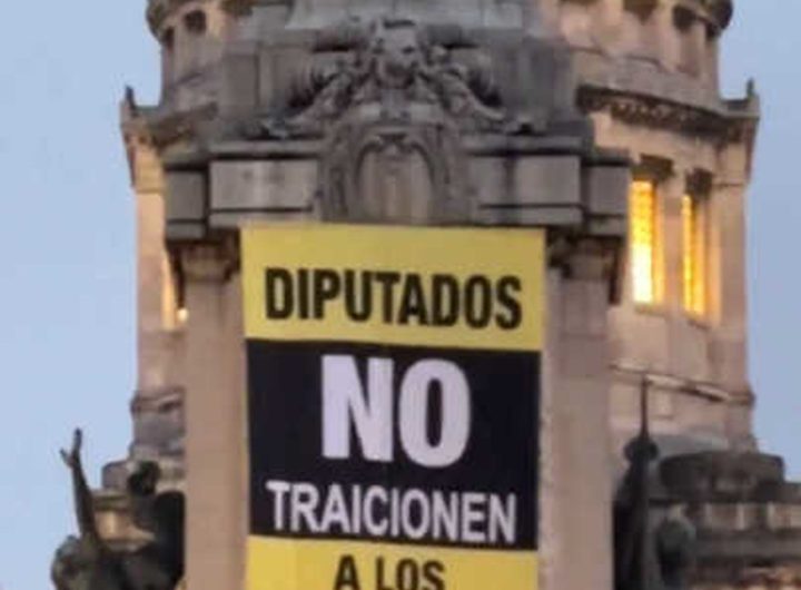 Activistas de Greenpeace intervinieron un monumento frente al Congreso en rechazo a la Ley de Glaciares Destacada del día Nacionales Política Activistas de Greenpeace intervinieron un monumento frente al Congreso en rechazo a la Ley de Glaciares