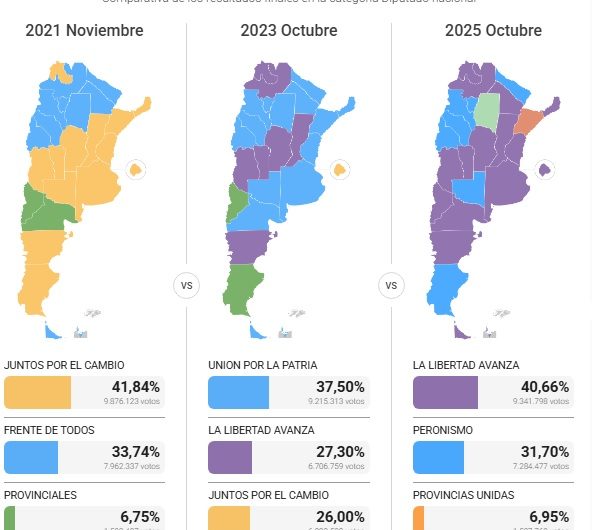 Elecciones 2025: los tres mapas que muestran los cambios en las fuerzas ganadoras de cada provincia desde 2021 Política Elecciones 2025: los tres mapas que muestran los cambios en las fuerzas ganadoras de cada provincia desde 2021