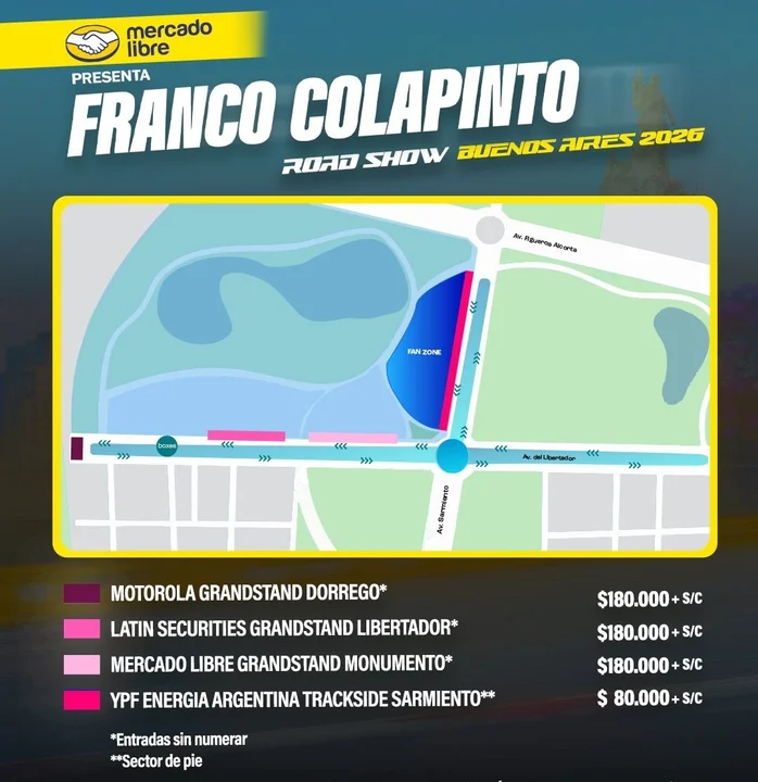 Se dieron a conocer los precios de las entradas para la exhibición de Franco Colapinto en Buenos Aires, que se realizará el próximo 26 de abril en Palermo, en una presentación que promete llevar el espíritu de la Fórmula 1 a las calles de la Ciudad.