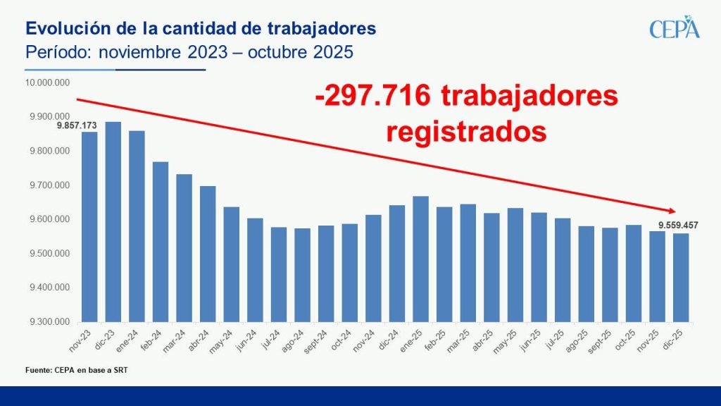 Según la publicación del Centro de Economía Política Argentina, con datos de la Superintendencia de Riesgos del Trabajo.