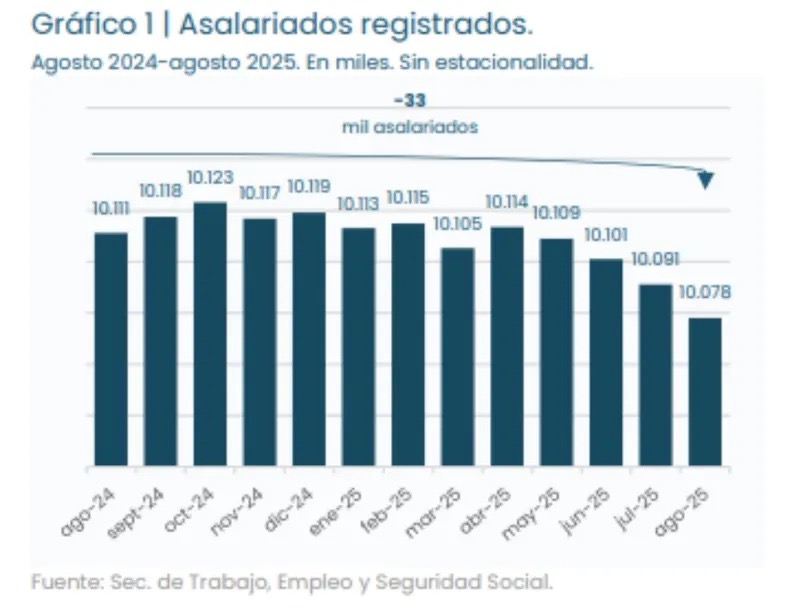 – 33.000 empleos menos que en agosto de 2024 (–0,3%)