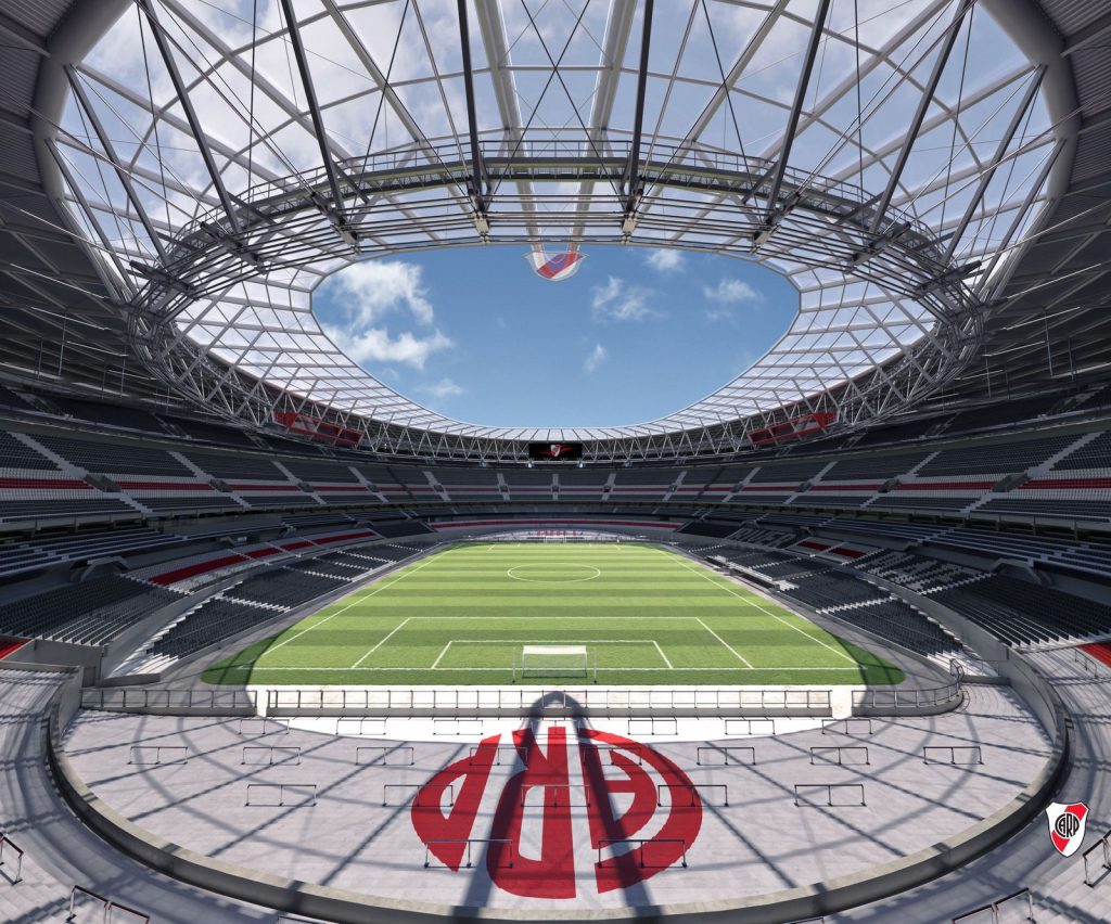 El eje central del proyecto será la construcción de una tribuna 360°, sostenida por una estructura de columnas perimetrales, que permitirá sumar 16 mil nuevas localidades completamente cubiertas. Las butacas estarán dispuestas de manera tal que formen una gran bandera roja y blanca rodeando todo el estadio, reforzando la identidad visual del Monumental.
