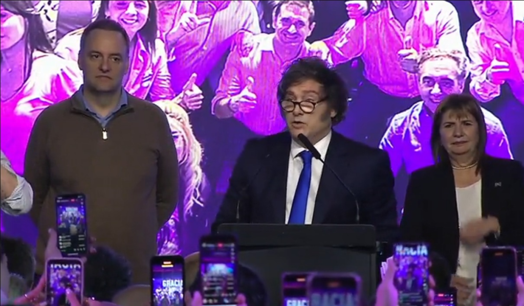 «Hoy claramente ha sido un día histórico para la Argentina. El pueblo argentino ha decidido dejar atrás 100 años de decadencia y persistir en el camino de la libertad, el progreso y el crecimiento. Hoy pasamos el punto bisagra, hoy comienza la reconstrucción de la Argentina grande», dijo el presidente.