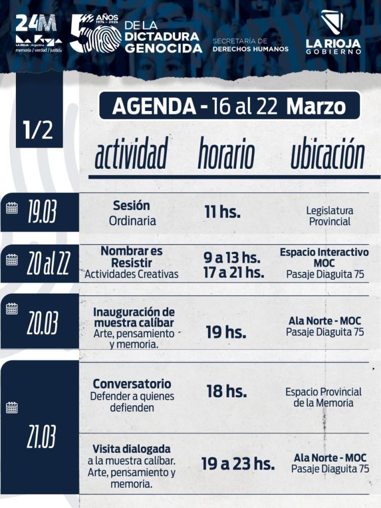 En el marco de las actividades por el Día Nacional de la Memoria por la Verdad y la Justicia, se desarrollará una agenda que incluye propuestas culturales, artísticas y espacios de reflexión en distintos puntos de la provincia: