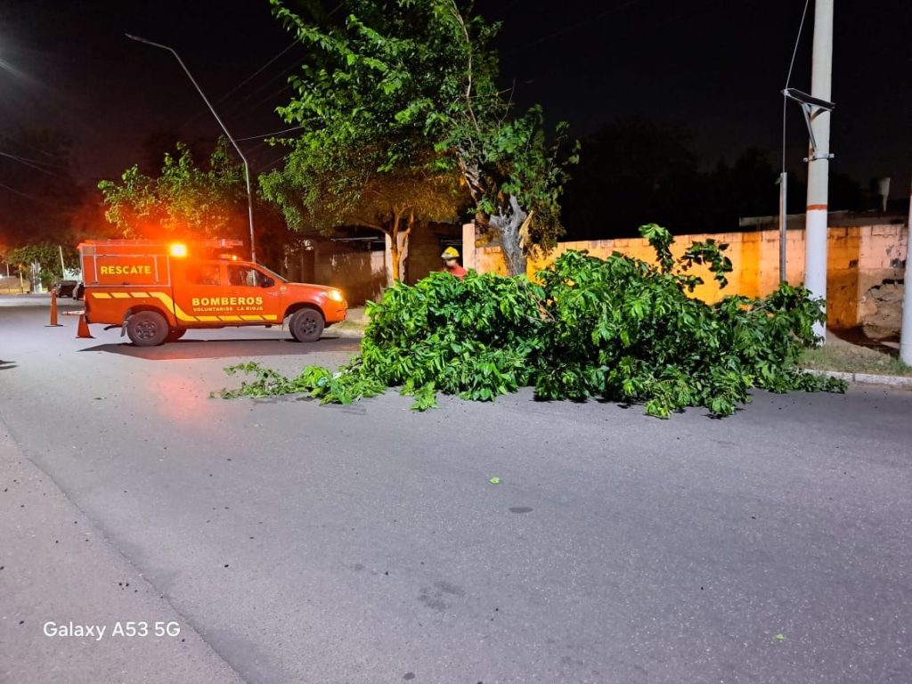 Equipos de Bomberos Voluntarios, Bomberos de la Policía de la Provincia, Protección Ciudadana Municipal y EDELaR trabajan de manera coordinada en tareas de corte y remoción de árboles caídos, despeje de calles y retiro de cableado eléctrico desprendido, con el objetivo de restablecer la circulación y garantizar la seguridad de los vecinos.
