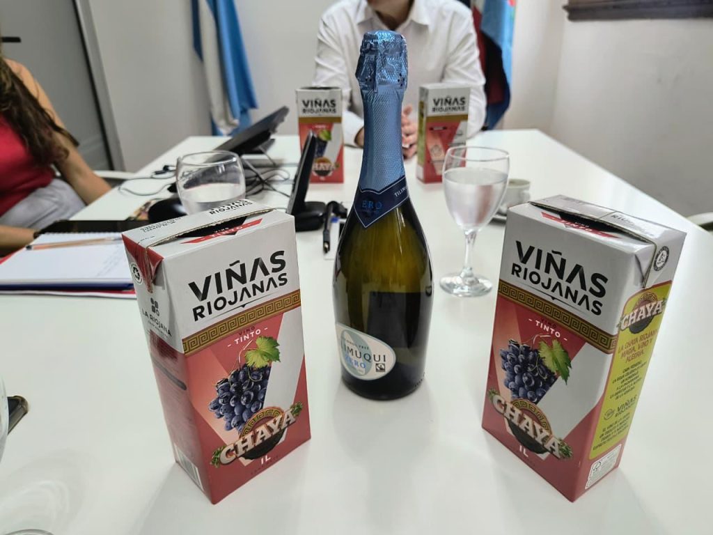 El gerente de La Riojana Cooperativa, Matías Caimi, le presentó al ministro de Turismo y Culturas, Gustavo Luna, el flamante packaging de su tradicional vino “Viñas Riojanas”, que en sus versiones blanco y tinto en envase tetrabrik contiene el logo oficial del Festival de la Chaya, además de un texto que resalta el valor cultural de la Chaya como evento que identifica a La Rioja ante el país y el mundo.