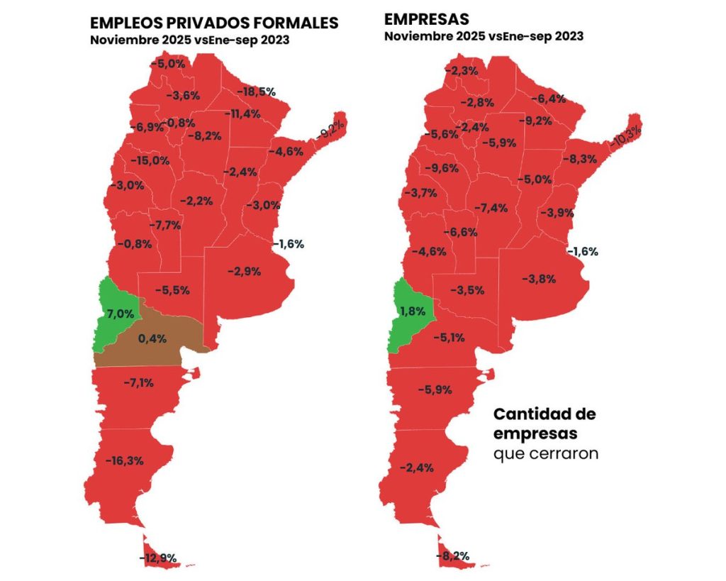 La Rioja se posiciona hoy como la provincia más golpeada por el actual modelo del Gobierno nacional, encabezando el ranking de destrucción de empresas empleadoras y evidenciando con claridad la profundidad de la crisis en el sector privado formal.