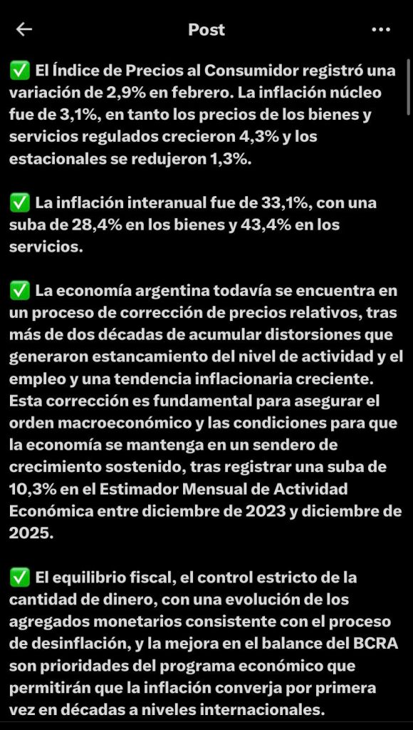 El ministro de Economía mediante sus redes sociales luego de que se conociera la inflación de febrero.
