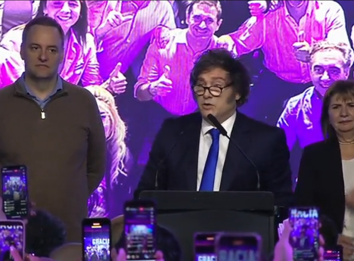 Eufórico festejo de Javier Milei frente a sus seguidores tras el triunfo Nacionales Política Eufórico festejo de Javier Milei frente a sus seguidores tras el triunfo