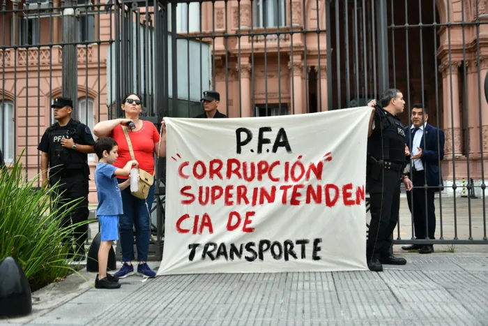 Un agente de la Policía Federal Argentina (PFA) protagonizó este miércoles por la mañana una protesta frente a la Casa Rosada, donde se esposó a las rejas del edificio en reclamo de mejoras salariales y para denunciar presuntos hechos de corrupción dentro de la fuerza. El efectivo fue posteriormente trasladado a la sede de la PFA para formalizar su denuncia ante Asuntos Internos.